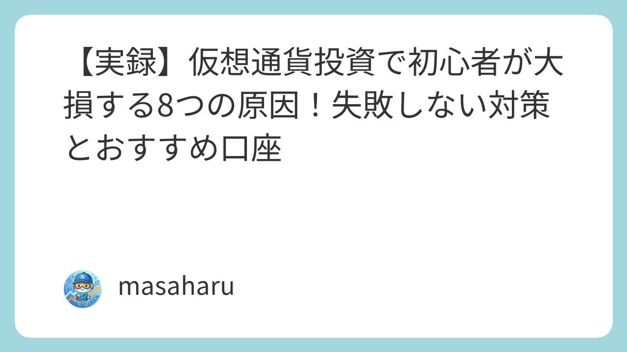 【実録】仮想通貨投資で初心者が大損する8つの原因!失敗しない対策とおすすめ口座