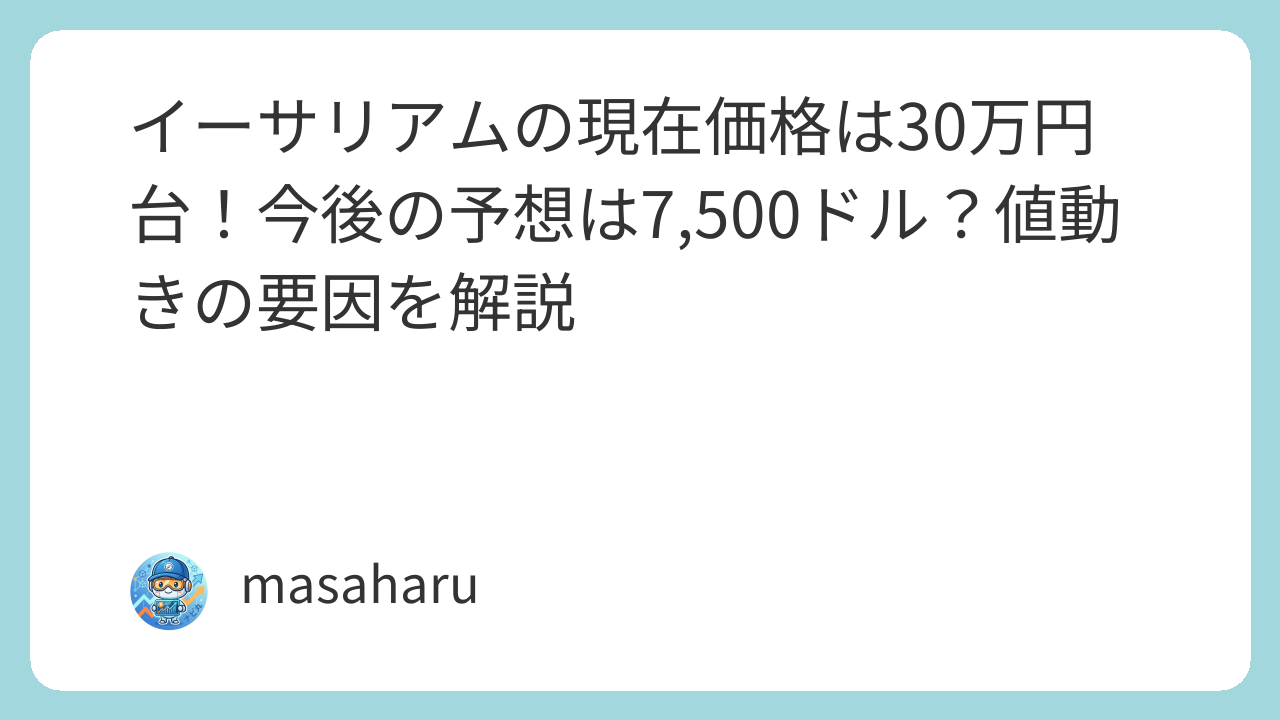 現在の価格推移は、ドル建てでの2,000ドルの攻防と為替相場の影響を直接反映した結果です。短期的な見通しとしては、この30万円台の水準を固め、上昇トレンドへの回帰に向けた準備を整えられるかが重要となります。